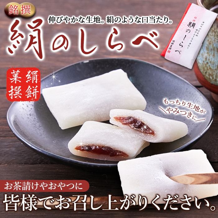 【約25g×10個】絹のしらべ/柔らかな餅生地で粒あんを包んだ和菓子 | まるで絹のような口当たり。ほんのり甘く柔らかいもっちり餅生地で粒あんをやさしく包みました