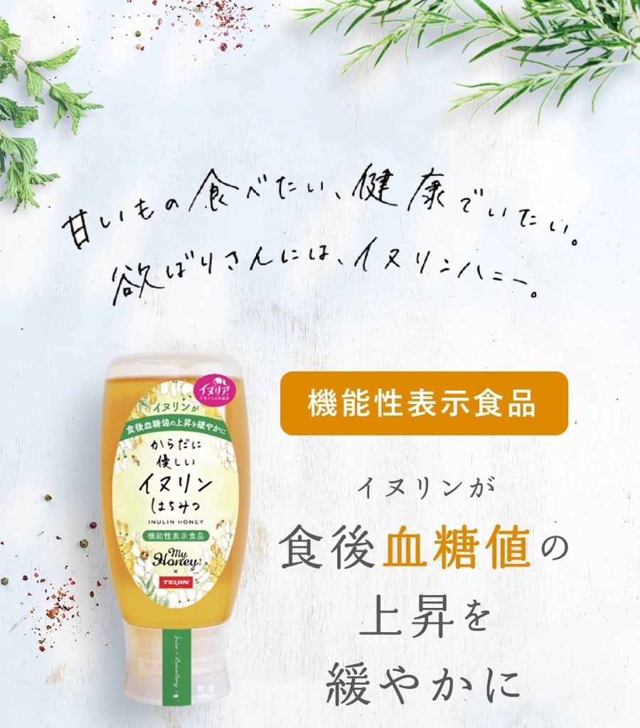 「イヌリンはちみつが⾷後⾎糖値の上昇を緩やかに。」