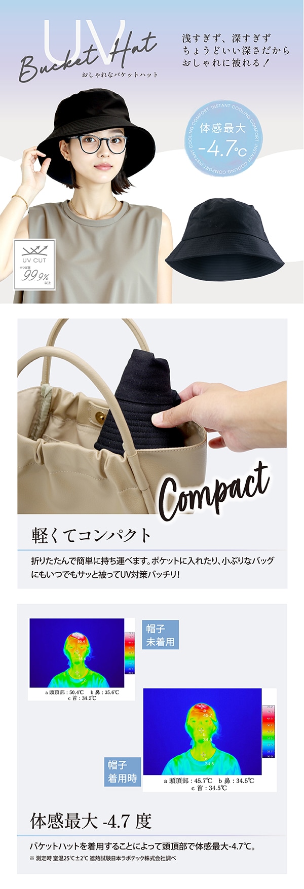 【ブラック】UVバケットハット | 体感-4.7℃!浅すぎず、深すぎず、おしゃれなバケットハット!