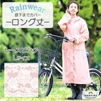 - 【レースブルー/Lサイズ】レインコート ロング丈 袖口レース...