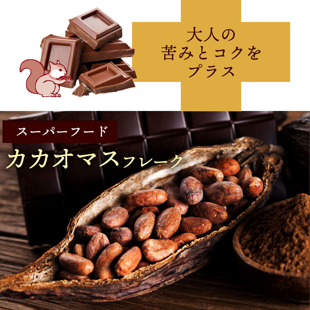 ひとくち食べれば、ごろっとしたナッツの食感とバナナやカカオマスフレークの絶妙な甘みとコクが口の中に広がります。ナッツは厳選されたこだわりの5種類を使用。