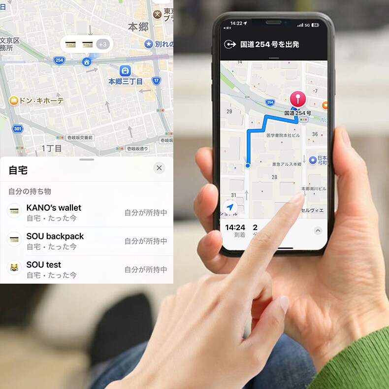 カバンや鍵、財布など、なくしたくないものに取り付けるだけで、いつでも安心を提供。