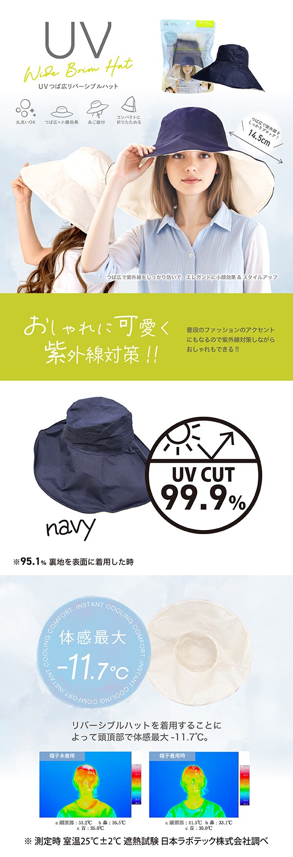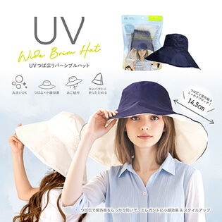 【ネイビー】UVつば広リバーシブルハット | つば広で紫外線をしっかり防いでエレガントにい小顔効果&スタイルアップ