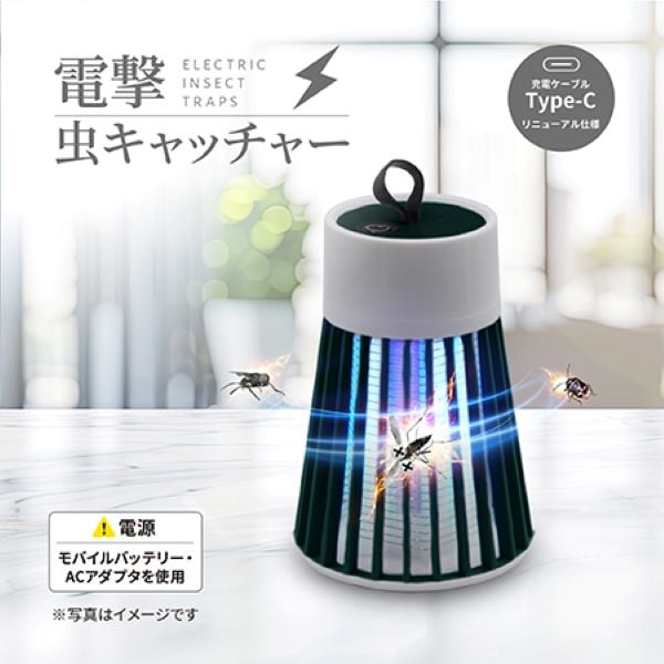 【グリーン/Type-C】電撃 虫キャッチャー(Type-C仕様) | ブルーライトで寄せ付けた虫を電撃でキャッチ