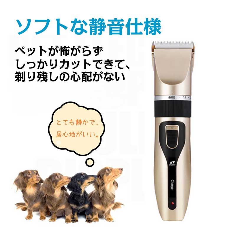 誤操作防止の滑りにくいダイヤルで操作が簡単。静音設計でペットが安心でき、全身カット可能。
