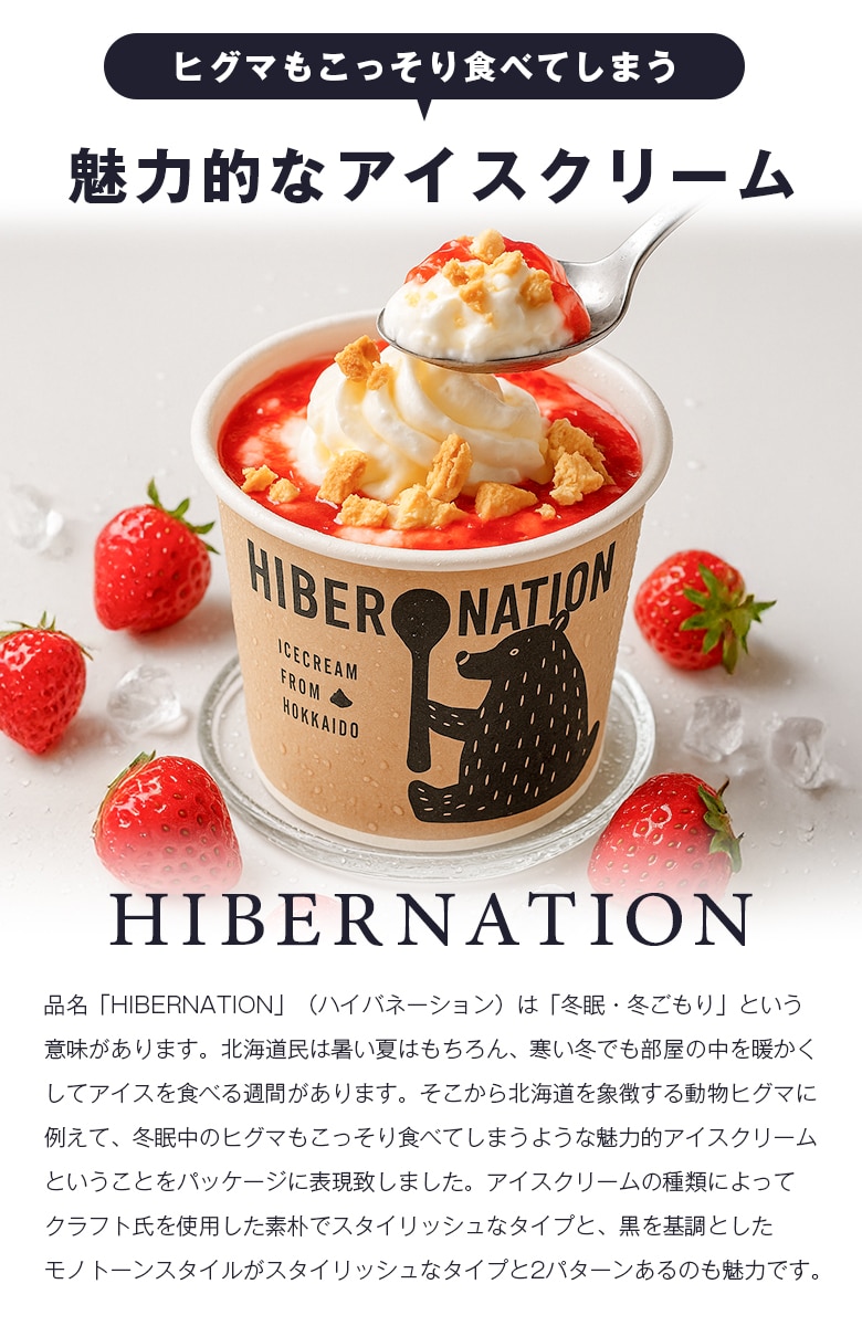 アイスの種類によってクラフト紙を使用した素朴でスタイリッシュなタイプと