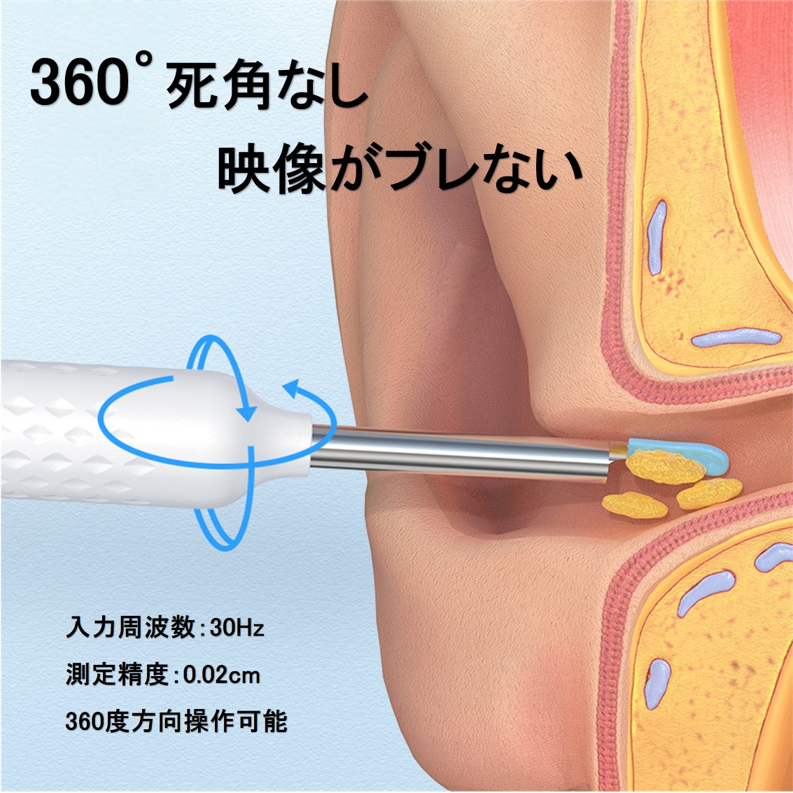3軸ジャイロセンサーで死角無し。隠れた耳垢を見つけ出します。