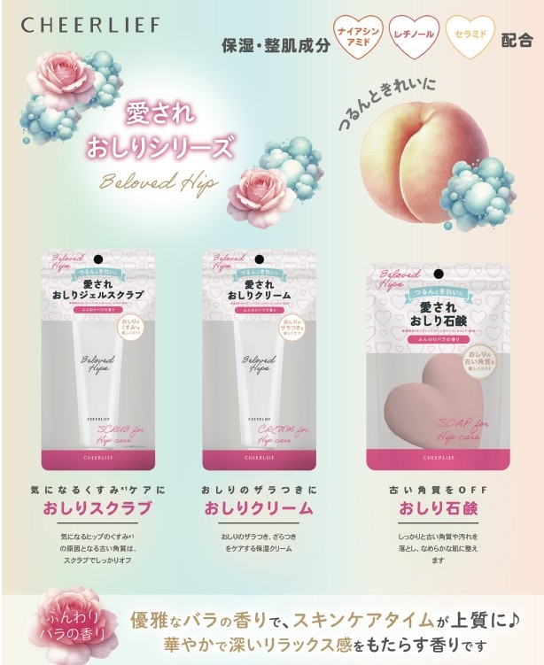 【3個セット】愛されおしり石鹸 | つるんとキレイに愛されおしり石鹸、ふんわりバラの香り
