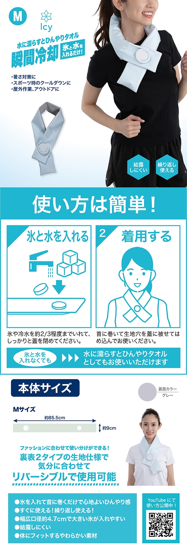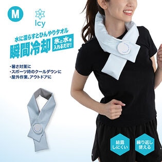 【パールブルー/Mサイズ】Icy氷嚢マフラー | 水に濡らすとひんやりタオル!瞬間冷却