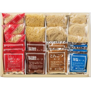 - 1503g(麺100g×10、尾道ラーメンスープ55g×3、備後府中味噌ラーメンスープ65g×2、とんこつラーメンスープ53g×2、瀬戸内藻塩ラーメンスープ34g×3)