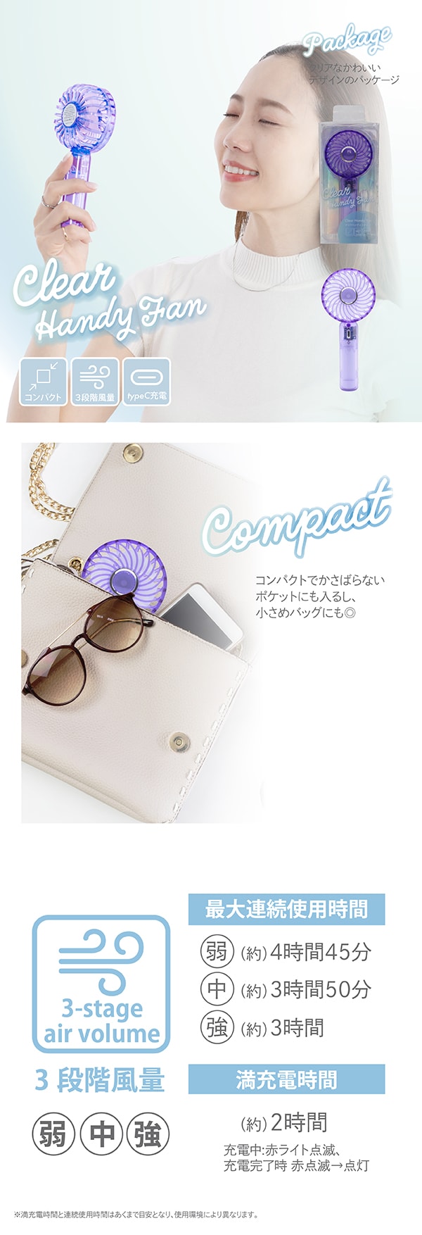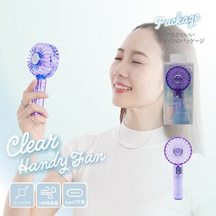 【パープル】クリアハンディファン | クリアかわいいデザインのパッケージ