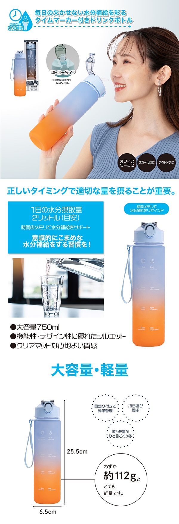 【ブルー×オレンジ】ストロー付きタイムマーカーボトル | 毎日の欠かせない水分補給を彩る