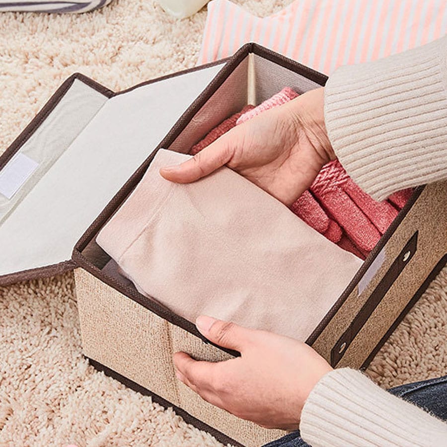 - 【グレー】折りたたみ式小さめふた付収納ボックス