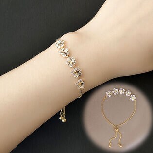 フラワーモチーフブレスレット | 長さが調節できる輝くブレスレット