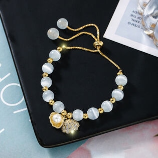 貝パールモチーフブレスレット | 貝パールモチーフがかわしいブレスレット 長さを調節できるスライド式