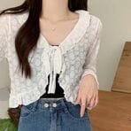 - 【ピンク】透かし編みサマーカーディガン