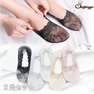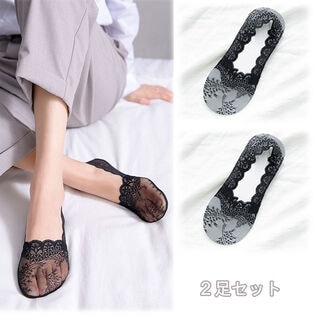 【ブラック/2足セット】浅履きレースソックス | スニーカーから見えにくいフットカバー さらっと快適な履き心地
