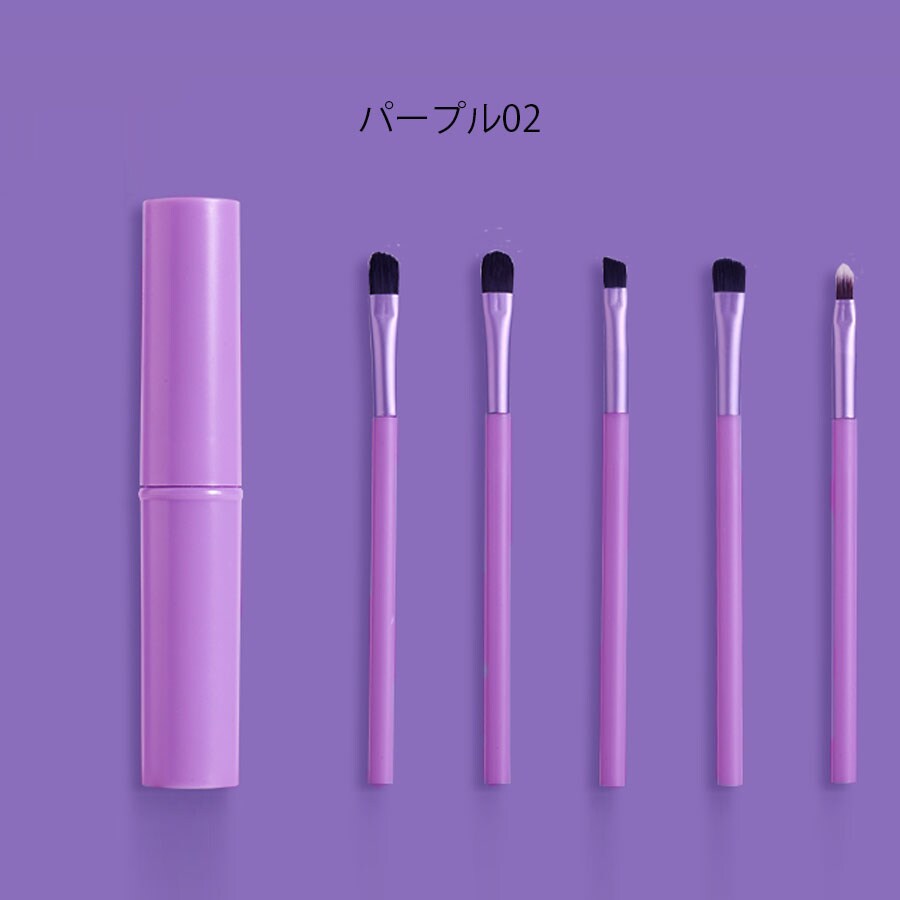 - 【パープル02】ケース付きメイクブラシ5本セット