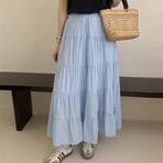 - 【ブルー】マキシ丈 ティアードスカート