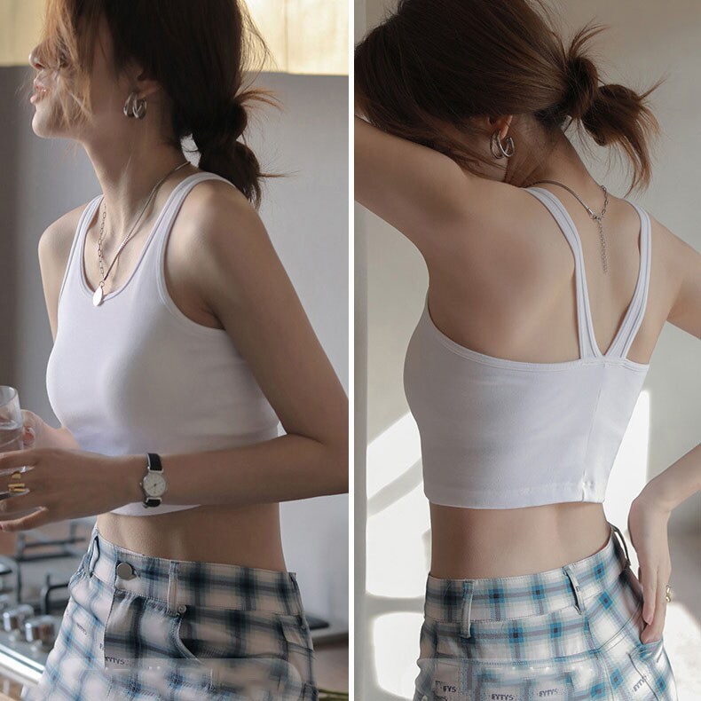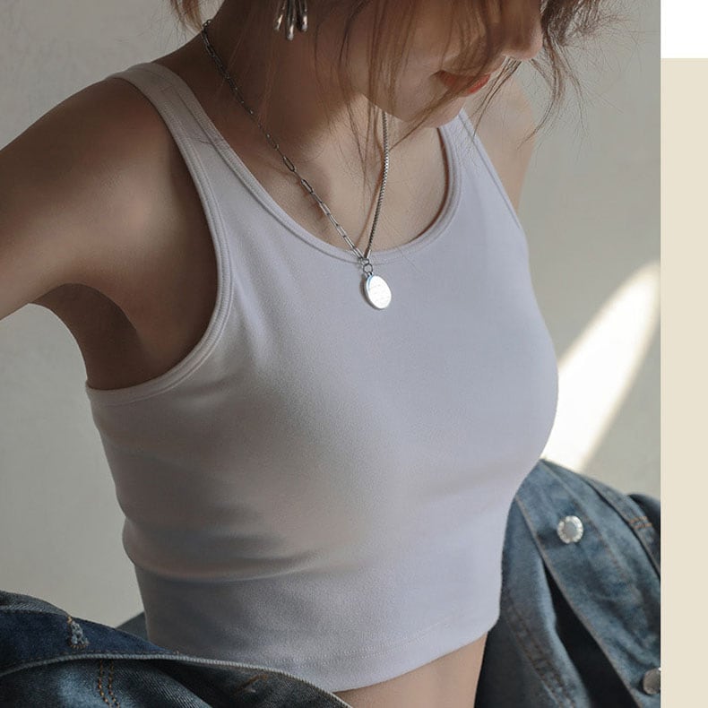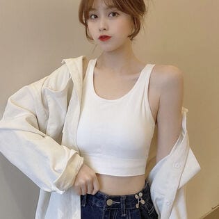 【ホワイト】ショート丈シンプルタンクトップ | パット付シンプルで使いやすい定番のタンクトップ