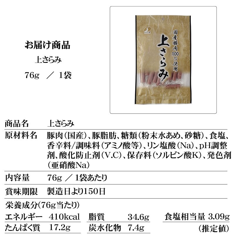 - 【228g(76g×3袋)】サラミ家 上サラミ