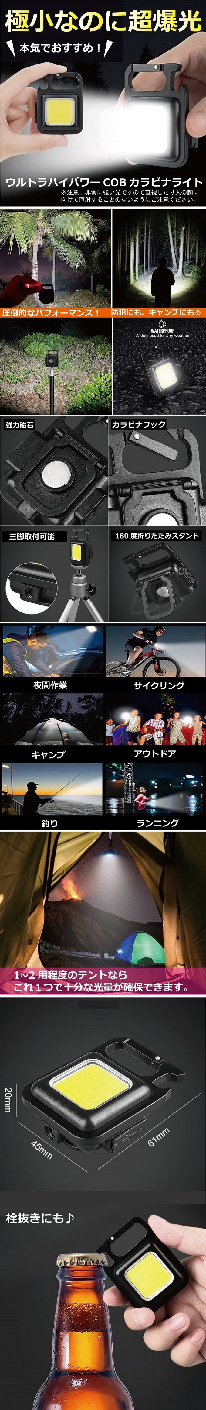 【2個セット】ウルトラハイパワーCOBカラビナライト | 30個のLEDチップで圧倒的な明るさを実現!極小なのに超爆光!キャンプや防犯、アウトドアに