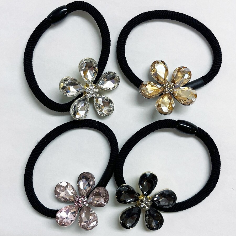 【キャメル】キラキラフラワーモチーフ ヘアゴム | シンプルなお花がモチーフなヘアゴム カジュアルからフェミニンスタイルまで