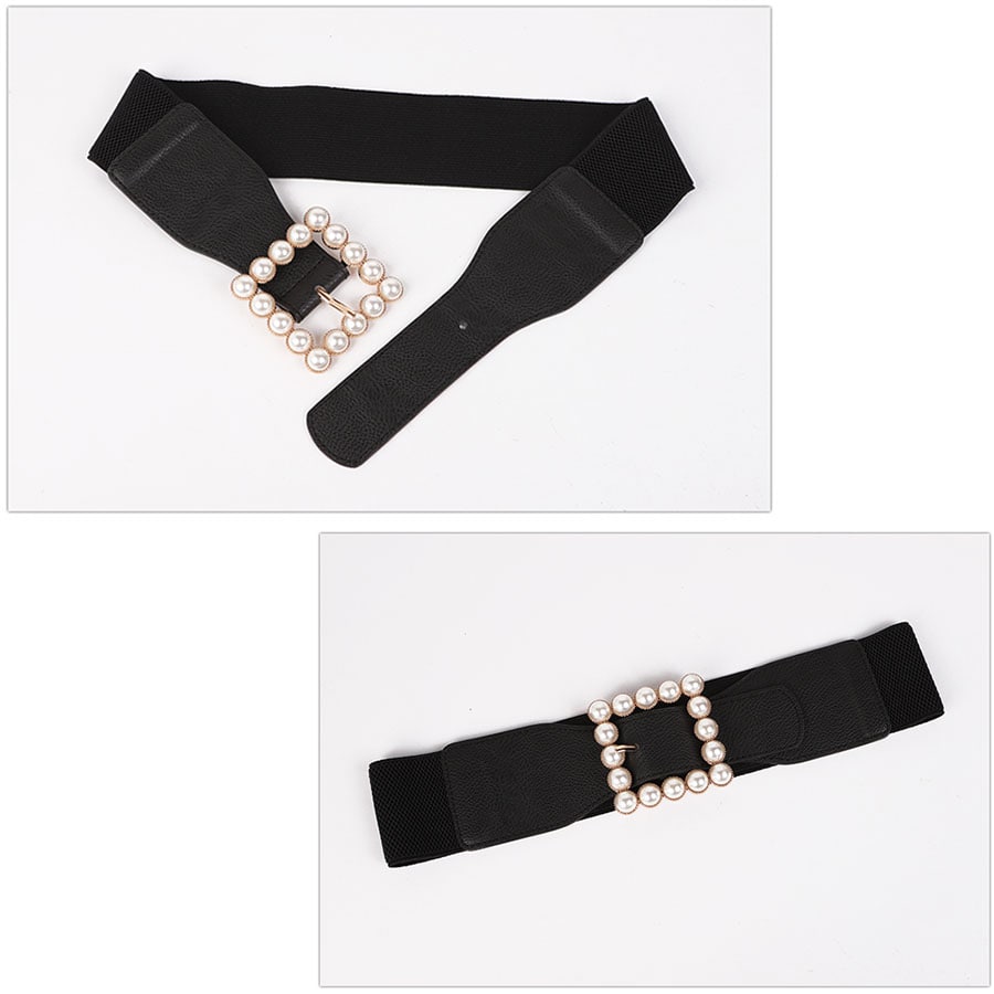 【ホワイト】フェイクパール 幅広ゴムベルト | ウエストの細見え、そして脚長効果も抜群に