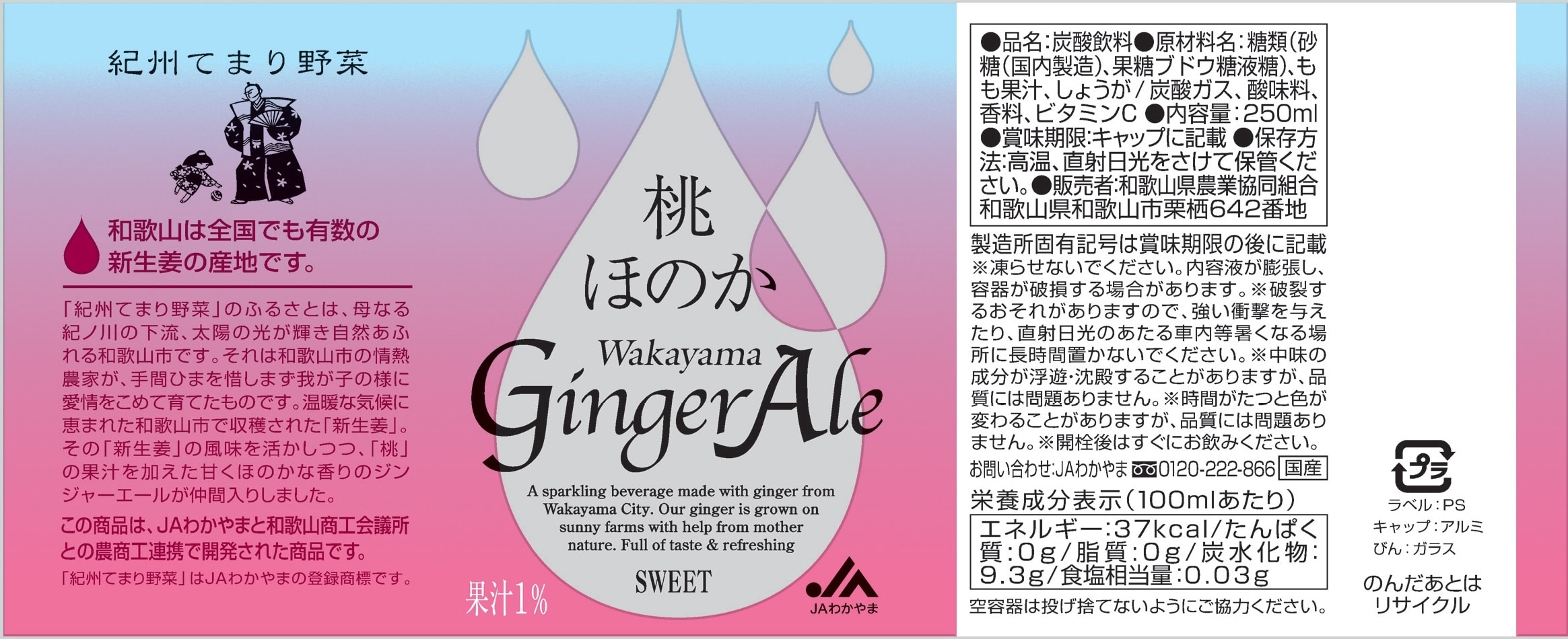 - 【瓶250ml×24本】桃ほのか わかやまジンジャーエール/和歌山県産生姜と国産もも果汁スッキリ後味