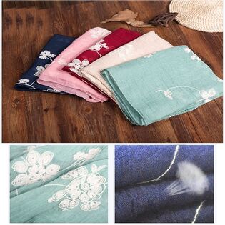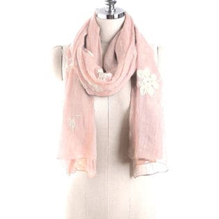 【ライトピンク】冷房対策にもなる春、夏、秋用 大判ストール | ボタニカル柄の刺繍で女性らしいエレガントに、少し肌寒いときに1枚あると便利