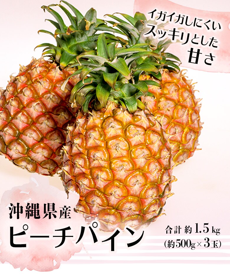 - 【計約1.5kg(約500g×3玉)/S〜Mサイズ】沖縄県産パインアップル『ピーチパイン』小玉