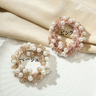 - 【ベージュ】パールビーズヘアゴム