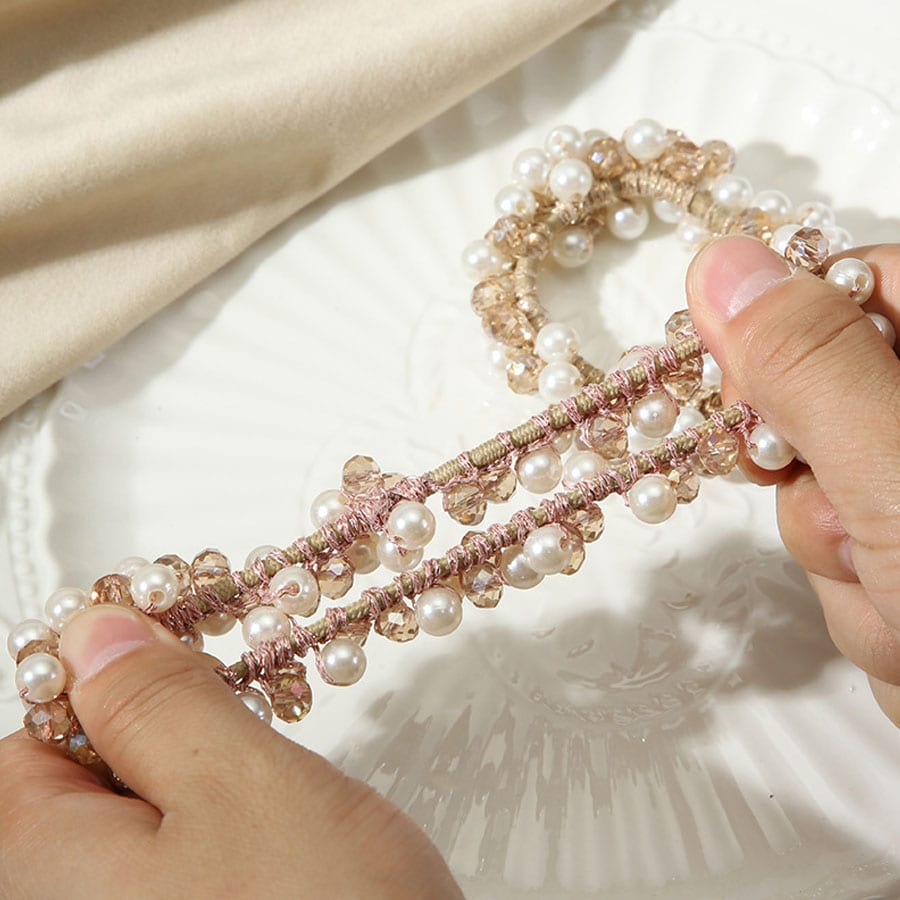 【ベージュ】パールビーズヘアゴム | 色味が淡いのでどんなお洋服にも合わせやすいおしゃれなヘアゴム