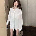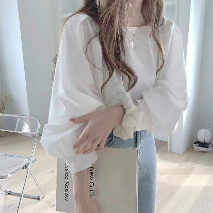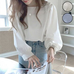 - 【ホワイト】スクエアネックパフスリーブブラウス(長袖)
