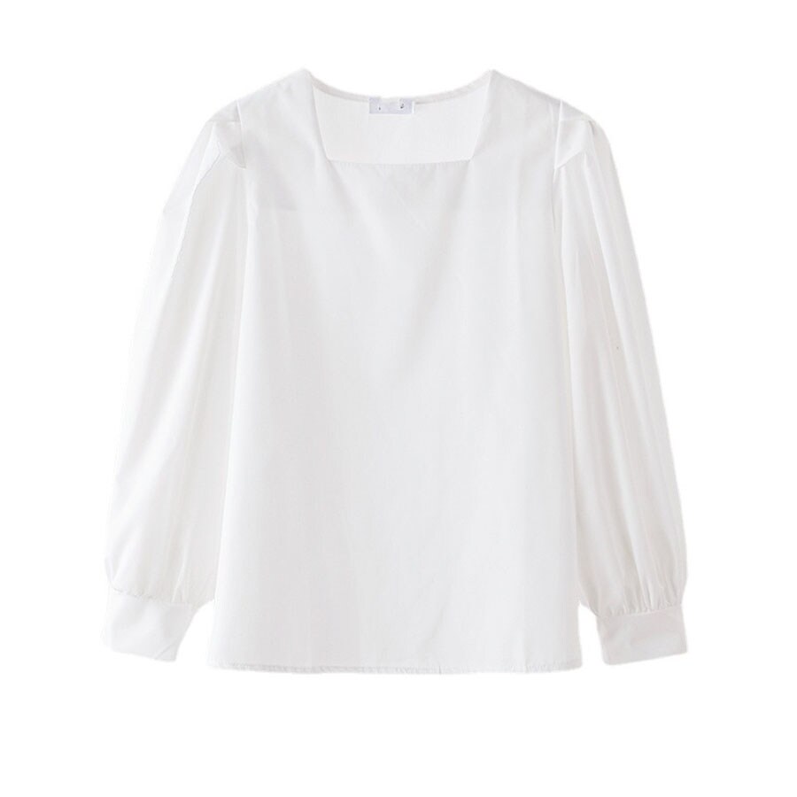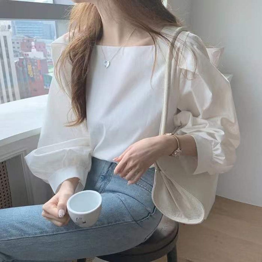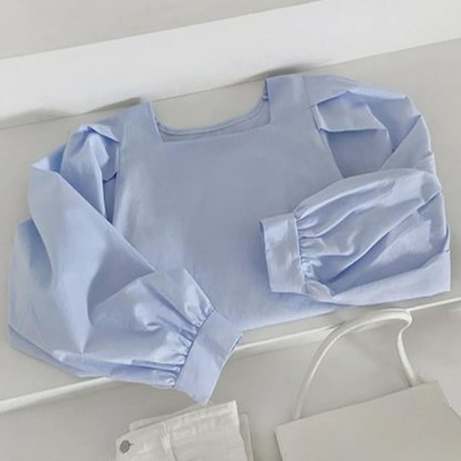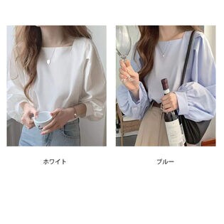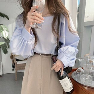 - 【ブルー】スクエアネックパフスリーブブラウス(長袖)