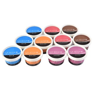 - ミルク80ml×3、メロン、ストロベリー、小豆、チョコレート各80ml×2 計11