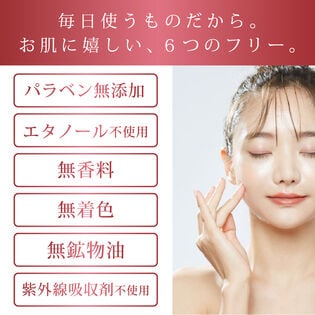 「パラベン無添加/エタノール不使用/無香料/無着色/無鉱物油/紫外線吸収剤不使用」