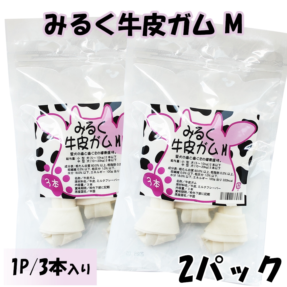 【Mサイズ×2パック/1パック3本入り】みるく牛皮ガム