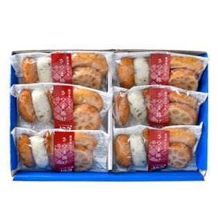 - (つけあげ20g×1、しそ天20g×1、いわし天20g×1、野菜天25g×1、れんこん天43g×1)×6
