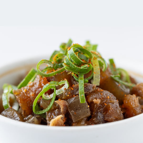 京都の老舗が製造する嗜好品で味付けした京風すじ煮込み。オーストラリア産の牛すじ肉を京都 澤井醤油本店の濃口醬油・佐々木酒造の日本酒・清水産寧坂七味家の一味でじっくり煮込みやわらかく仕上げました。お好みでねぎやからしとご一緒にお召し上がりください。※ねぎとからしは付いておりません。