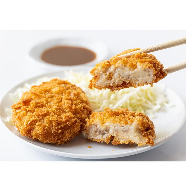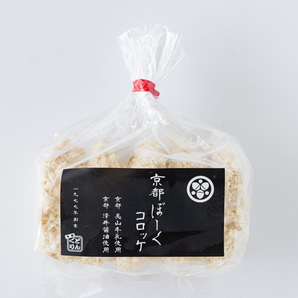 京都のブランド畜産物京都ぽーく使用。コロッケのタネの味付けには、京都美山の美山牛乳、京都の老舗、澤井醤油本店の濃口お醤油を使用しました。衣にもこだわり、外はサクっと中はしっとりとした甘みと旨みが詰まった京風コロッケです。