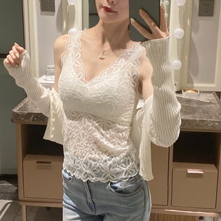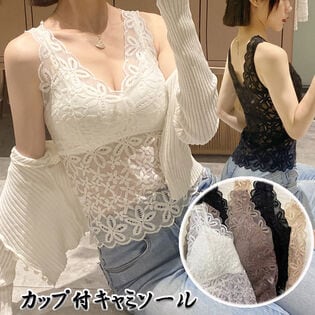 - 【ホワイト】総レースフラワータンクトップ(カップ付き)