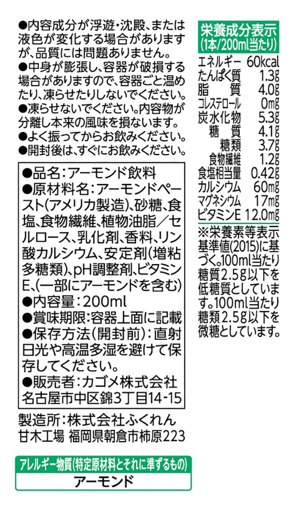 ・アレルギー表示:アーモンド