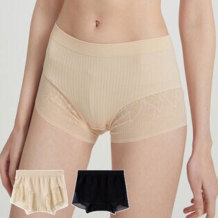 【ブラック】ボクサーレースショーツ(スズラン柄) | おへそ下まで優しく包み、ボトムに響きにくいショーツ
