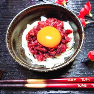 ●ユッケ:桜ユッケはタレの甘辛い味付けや卵黄の濃厚な風味が加わることで、よりコクのある味わいになります。