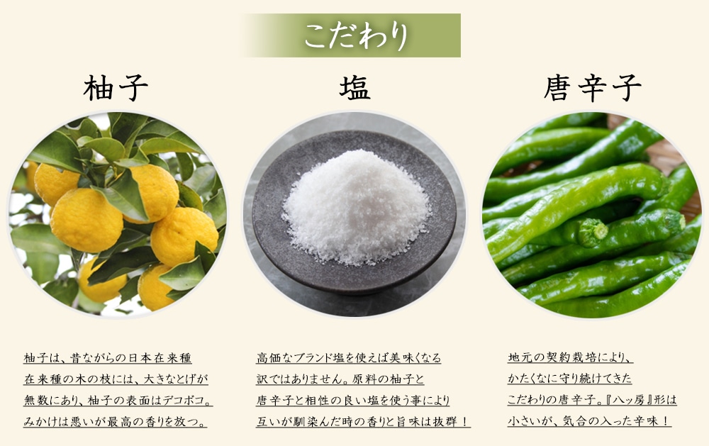 ・原材料/材質/素材:柚子皮(九州産)、唐辛子、食塩