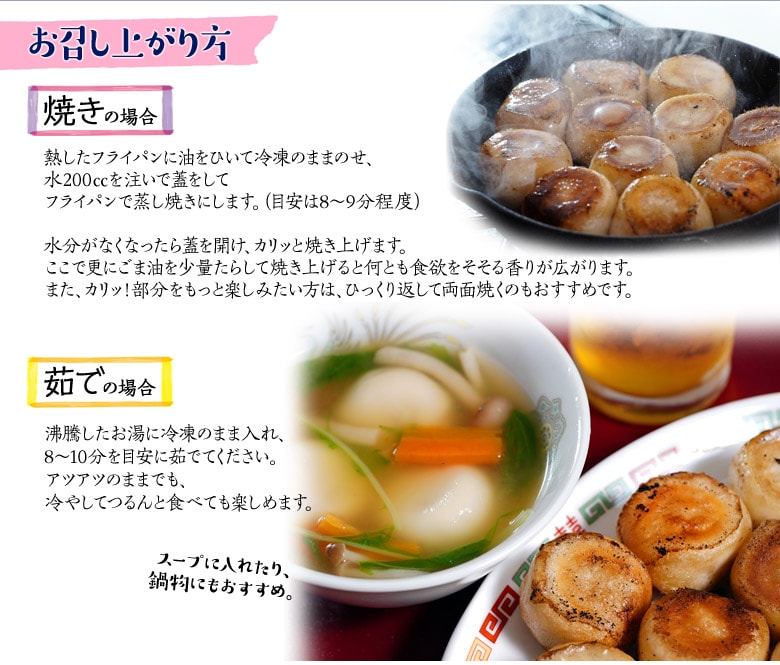 沸騰したお湯に冷凍のまま入れ、8〜10分を目安に茹でてください。