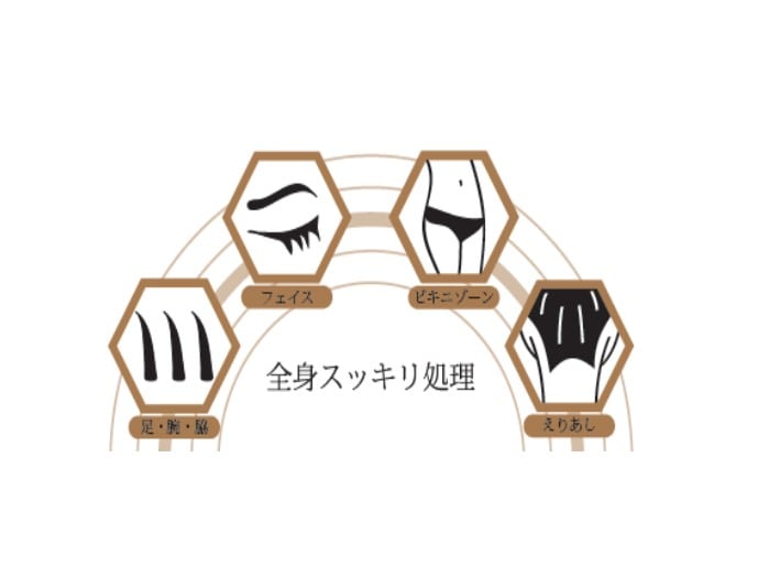 全身スッキリ、簡単処理(足、腕、脇)、フェイス、ビキニゾーン、えりあしなど。