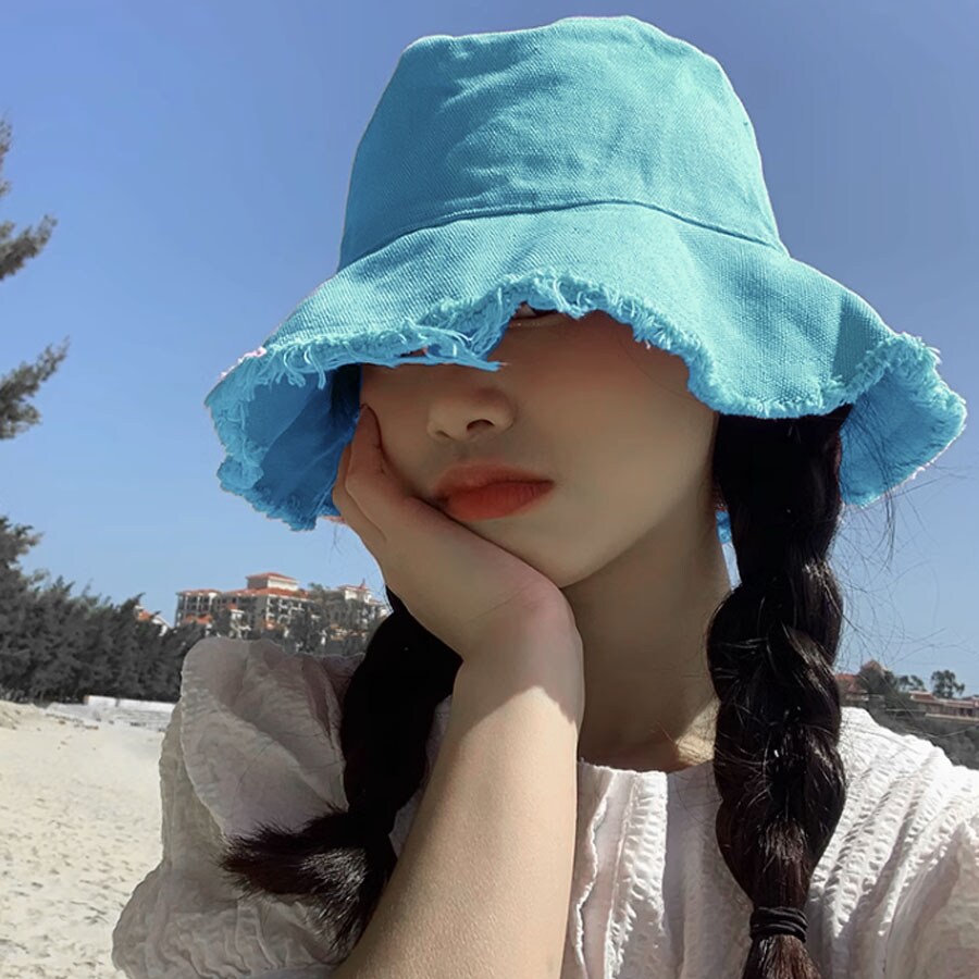 【ライトブルー】フリンジバケットハット | 屋外での紫外線対策にオススメ なバケットハット
