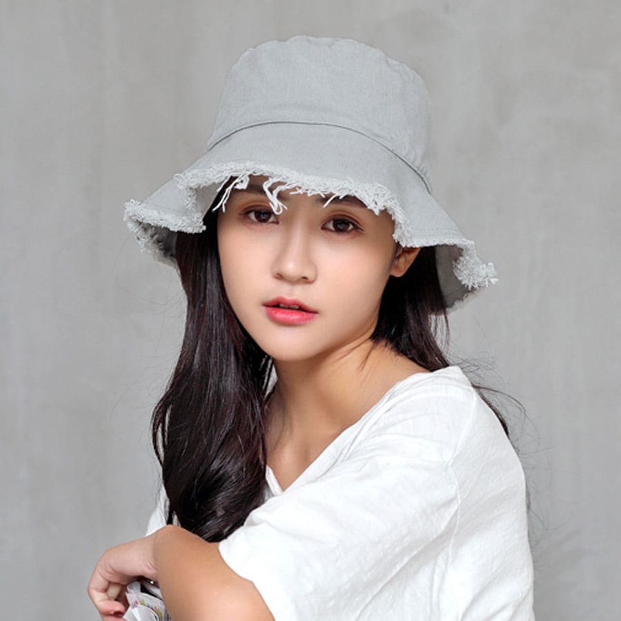 【ライトグレー】フリンジバケットハット | 屋外での紫外線対策にオススメ なバケットハット